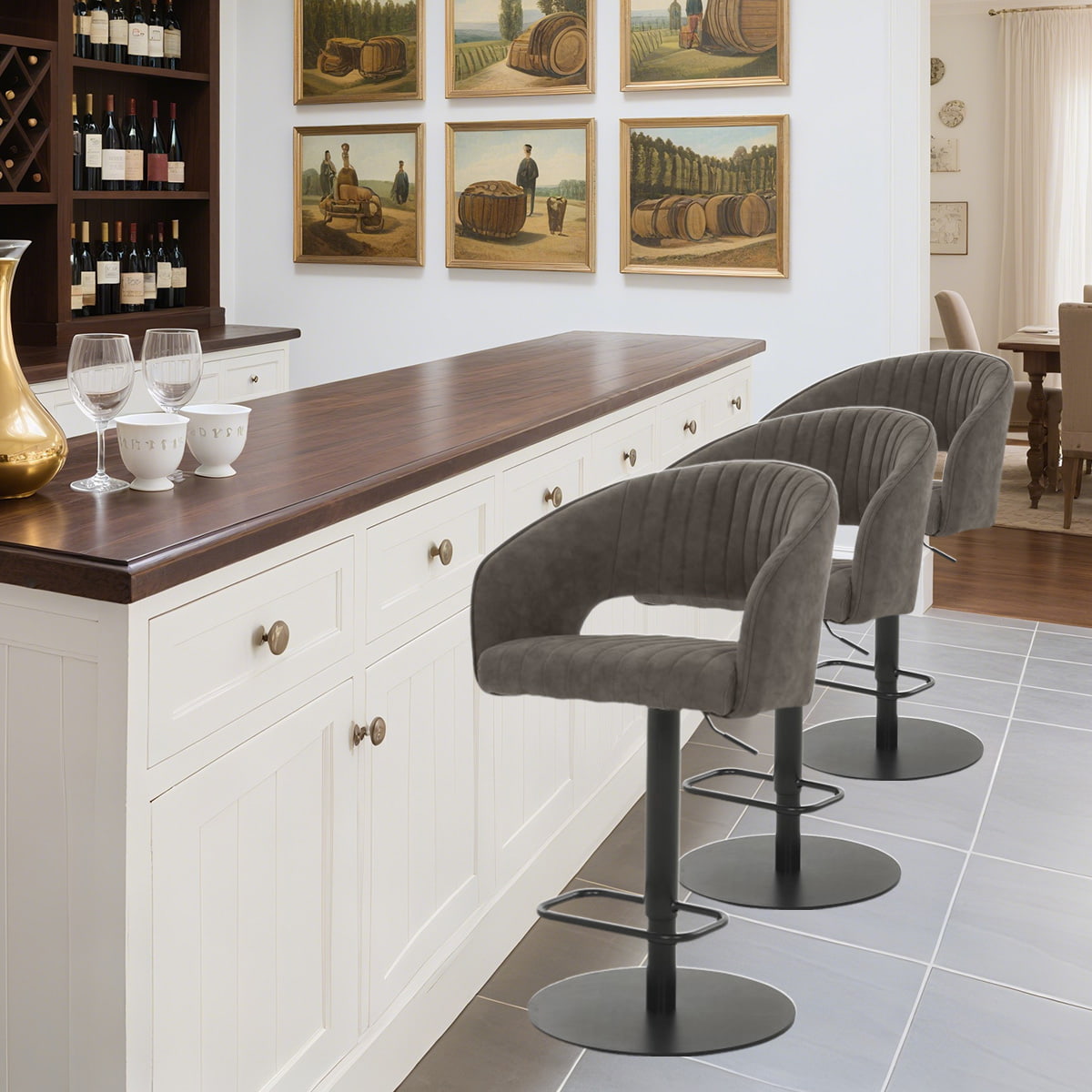 LEER MÁSEste taburete de barra ajustable de terciopelo azul marino es donde la elegancia se encuentra con la comodidad ergonómica. Tapizado en terciopelo de lujo y soportado por una base de pedestal redondo de tonos dorados, este taburete proporciona una adición glamorosa a cualquier cocina o bar moderno. El asiento giratorio de 360 ° y la capacidad de ajuste de la elevación de gas lo hacen perfecto para configuraciones dinámicas, mientras que el diseño curvo hueco ofrece soporte lumbar firme. Ya sea que esté organizando una cena o relajándose con un cóctel, esta silla de bar giratoria de terciopelo ofrece funcionalidad sin comprometer el estilo. Es ideal para bares caseros, áreas de comedor, salones e interiores de hotel boutique que buscan un aspecto refinado y contemporáneo.