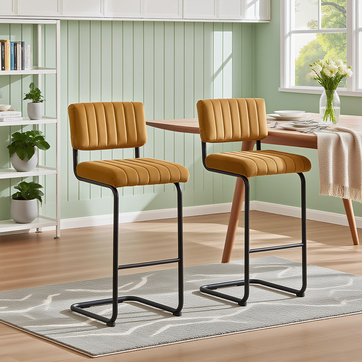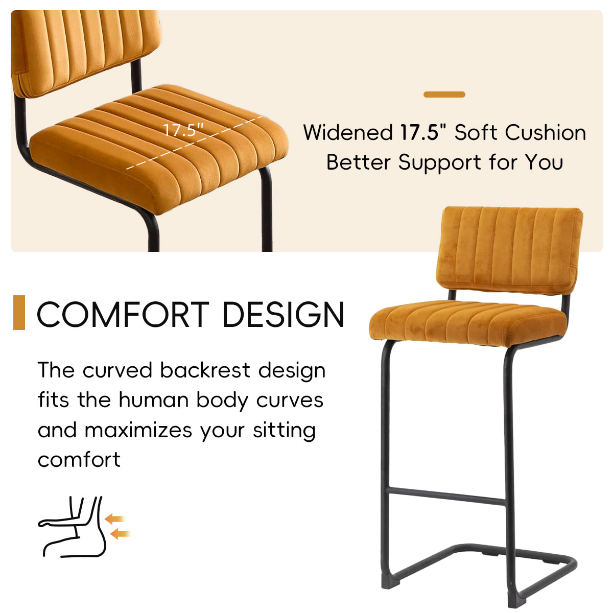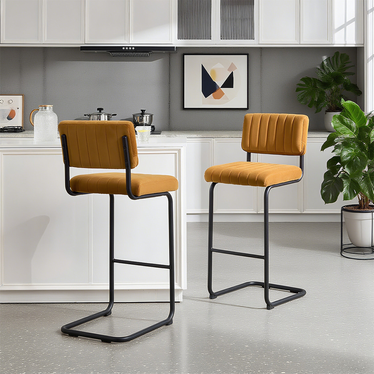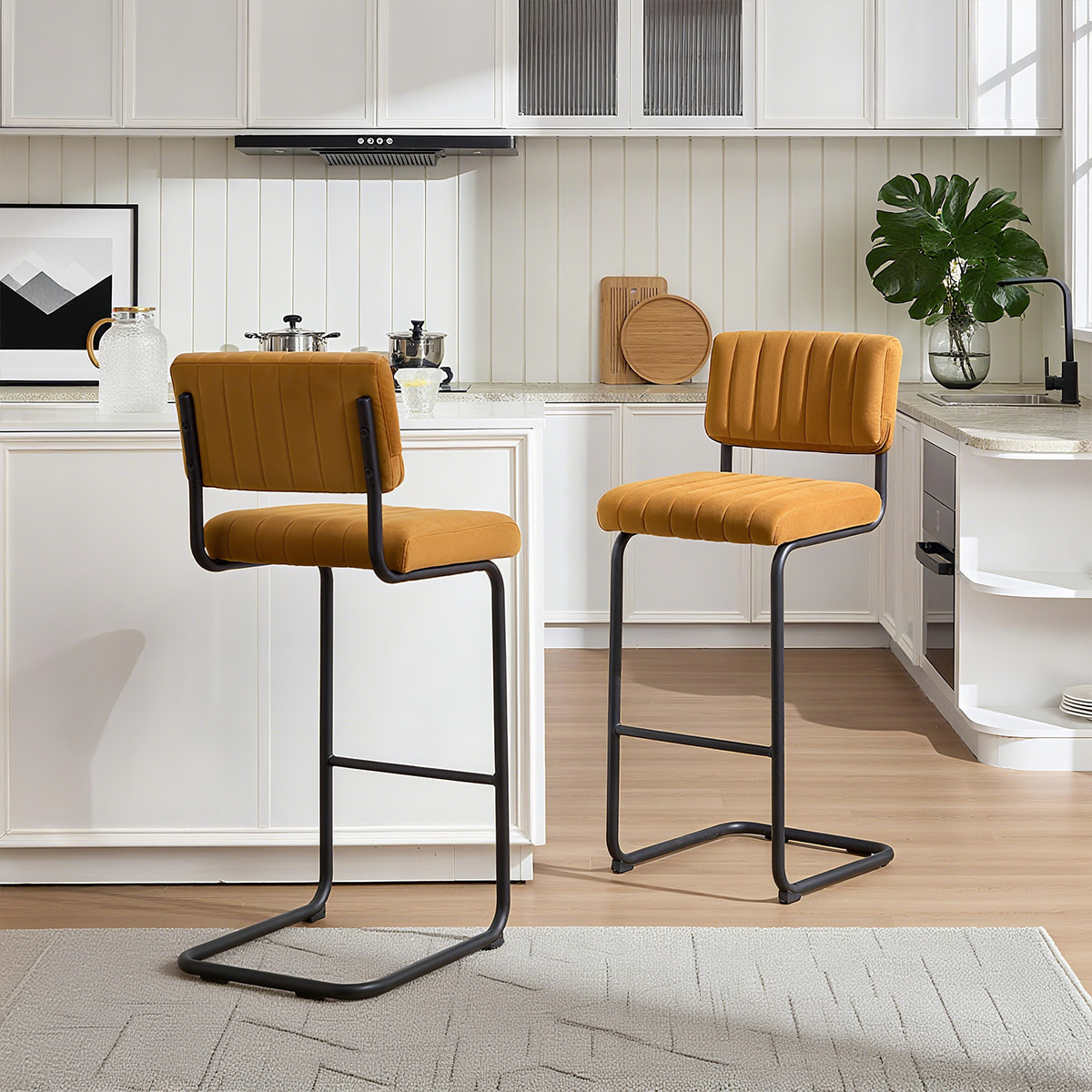 Palabras clave: taburete de bar de terciopelo, silla de bar de mediados de siglo, taburete de mostrador en voladizo, taburete de cocina tapizado, silla de bar con mechones de canal, asientos modernos de terciopelo, taburete de bar de naranja, silla de altura de bar ergonómica, muebles de bares industriales, asiento de barra de diseño