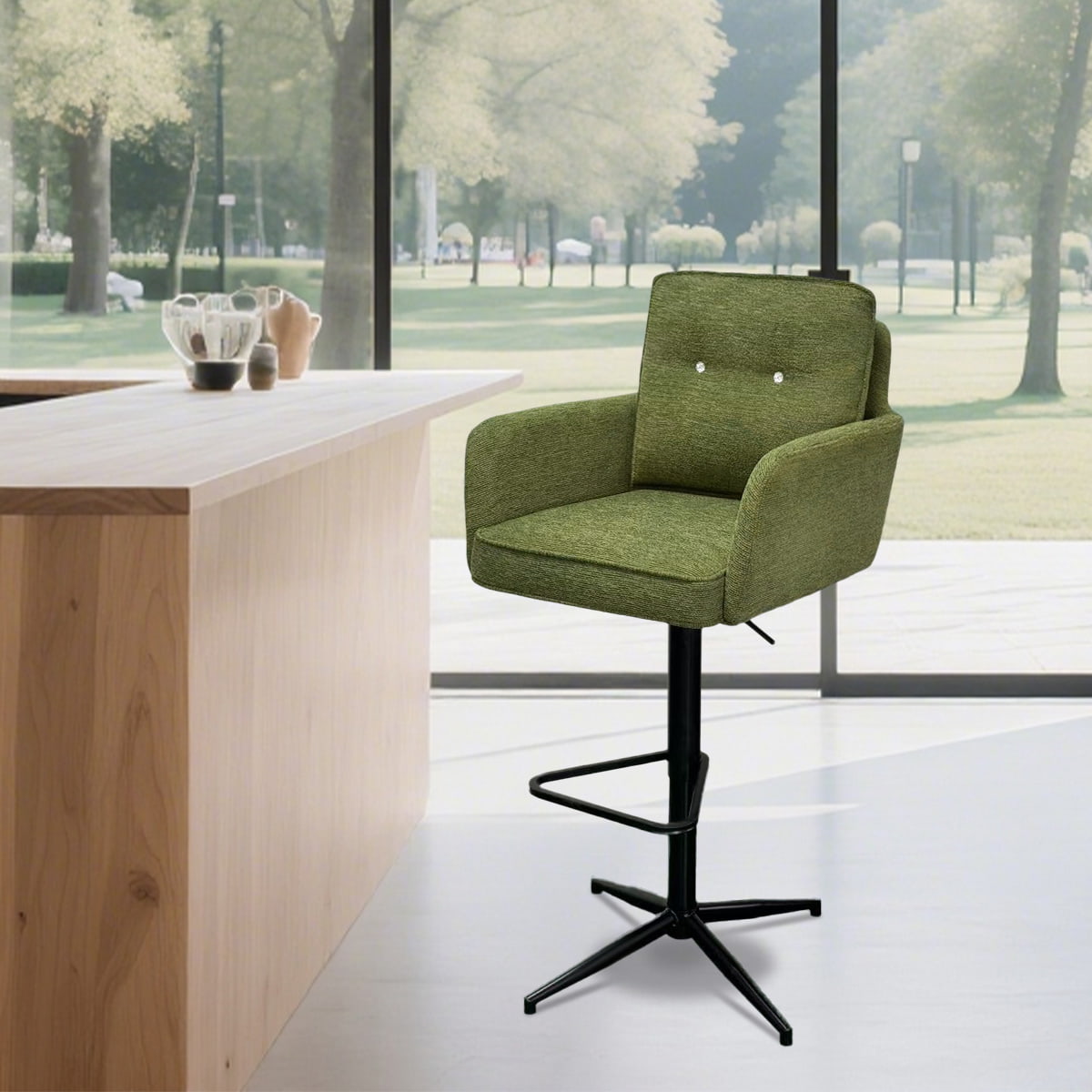 LEER MÁSEl moderno taburete de barra giratoria ajustable de tela verde con una base automática y una base de metal está hecha de tela verde, con un cojín de espuma de alta densidad y un reposapiés ajustable. El taburete de la barra está equipado con una base de metal con recubrimiento de polvo negro con un diseño de soporte anti-tip de cuatro patas. La base también está equipada con un reposapiés triangular integrado para un diseño simple. Con función de altura ajustable y un mecanismo giratorio de 360 grados, este taburete de bar es adecuado para islas de cocina, comedores o áreas de oficina.