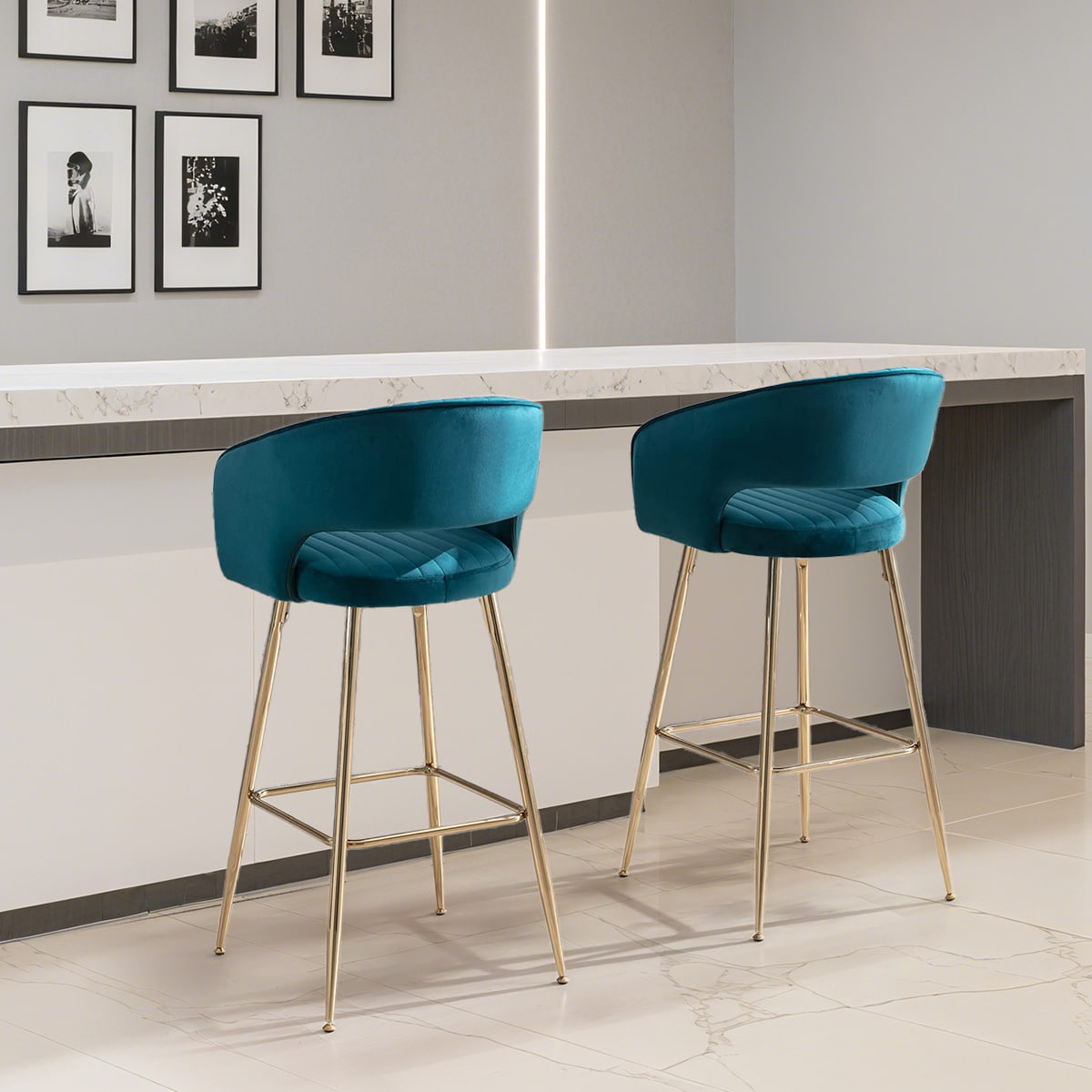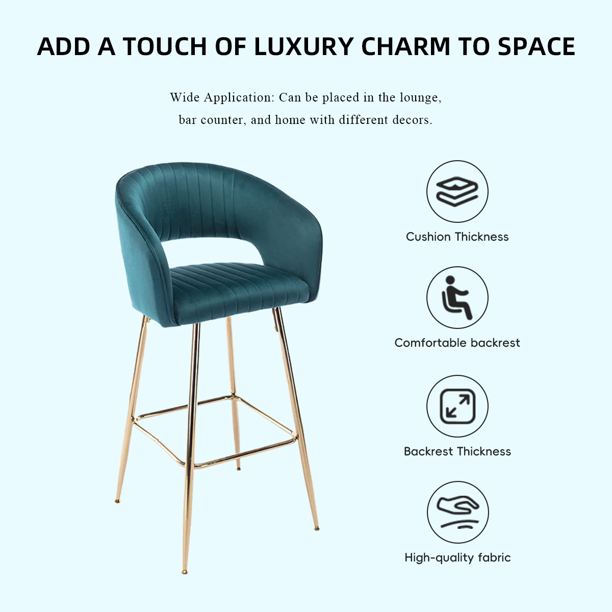 Actualice su espacio con este taburete de barra de terciopelo verde azulado con una espalda con mechones, un cojín de lujos y patas de metal dorada, la combinación ideal de asientos modernos de la isla de cocina y lujo. Diseñada para el uso de la altura del mostrador, esta silla de barra tapizada ofrece soporte ergonómico con un diseño de espalda hueca, reposabrazos suaves y reposapiés incorporado. Perfecto para bares caseros, restaurantes, cafeterías e interiores boutique, el taburete de bar de terciopelo con espalda y reposapiés trae estilo y comodidad a cada reunión. Sus pies antideslizantes ajustables, toque de terciopelo suave y asiento de espuma de alta densidad aseguran tanto la estabilidad como el atractivo visual.