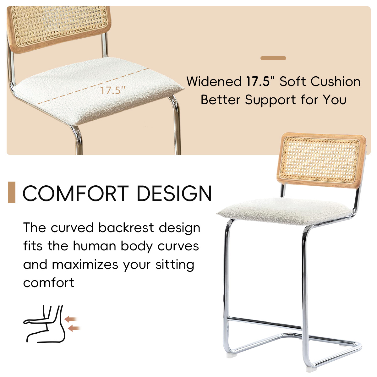 ● Asientos cómodos: el cojín de boucle acolchado de 17.5 "de ancho proporciona soporte ergonómico