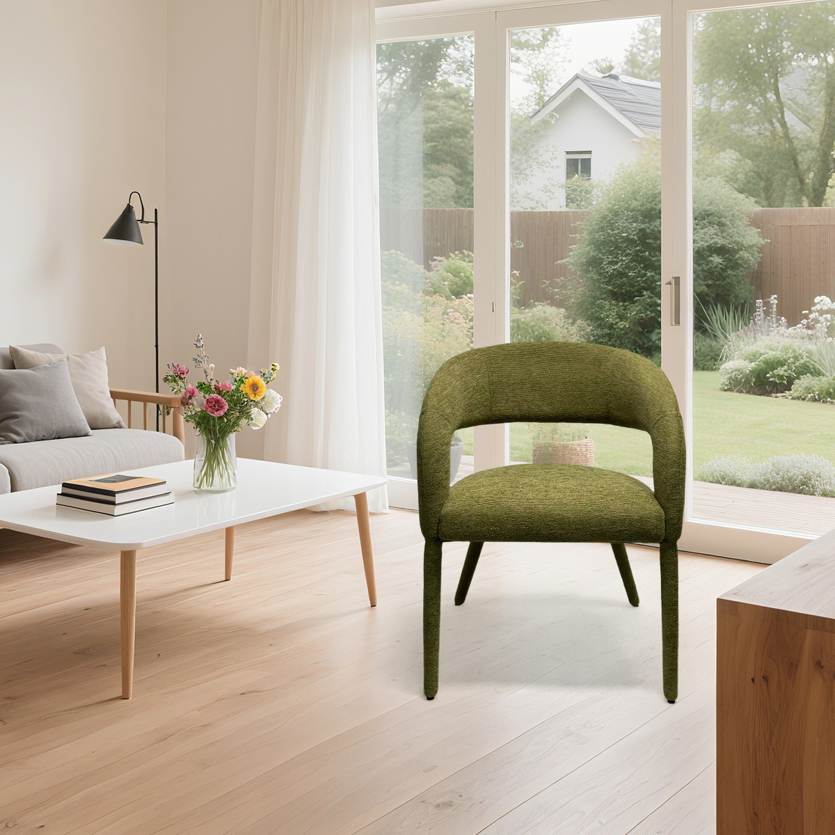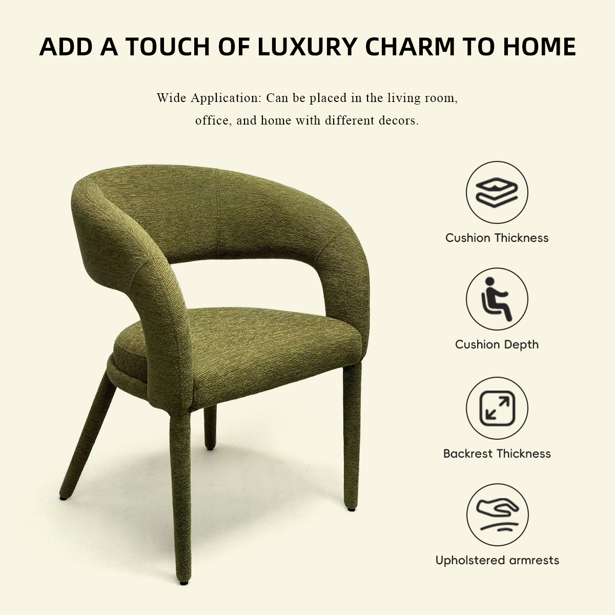 Perfecto para palabras clave como el proveedor moderno de sillas de comedor, fabricante de sillas de boucle tapizado, asientos de acento de sala de estar y silla de comedor B2B al por mayor.