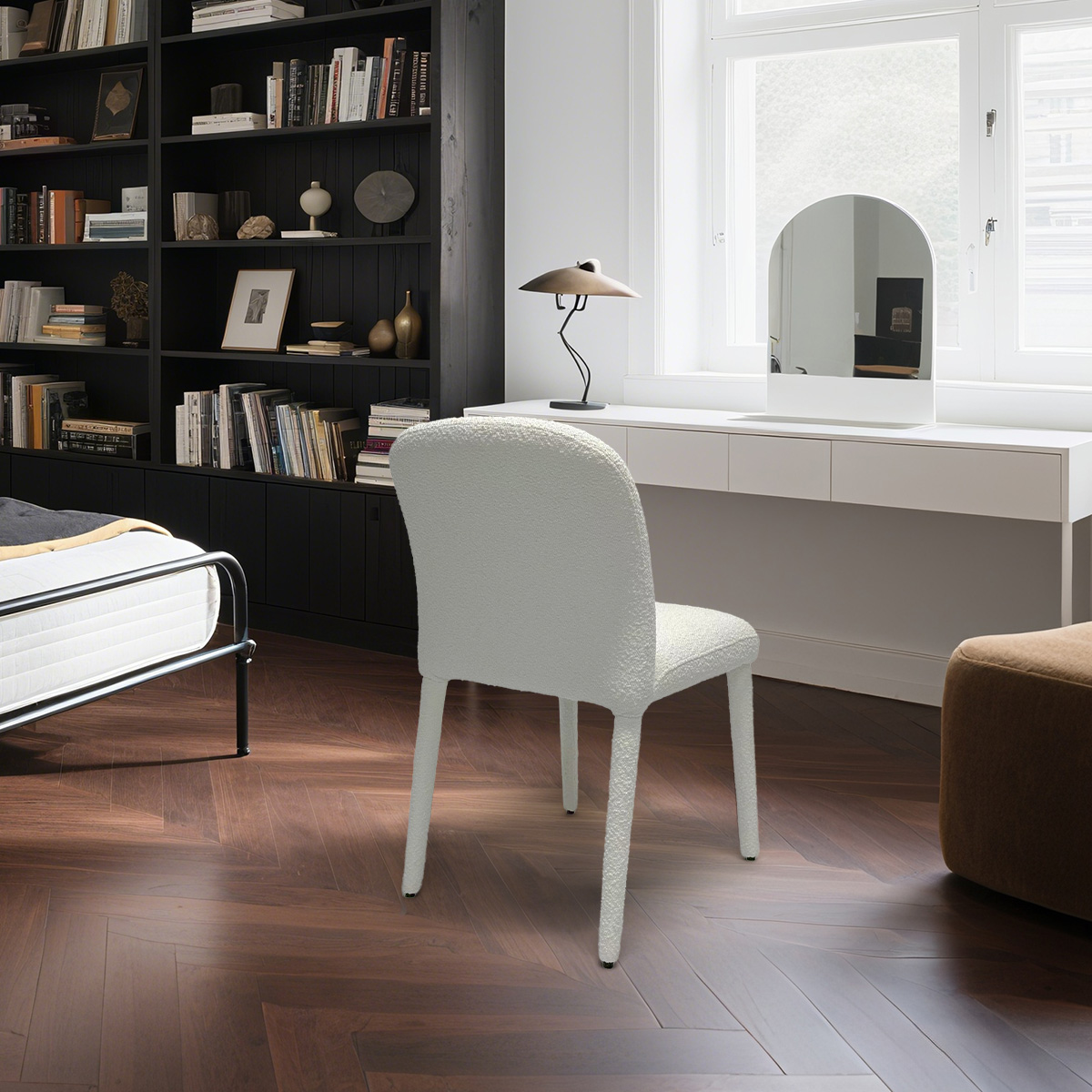 Silla de comedor sin brazo sin brazo de marfil Bouclé: madera de abedul y marco de acero