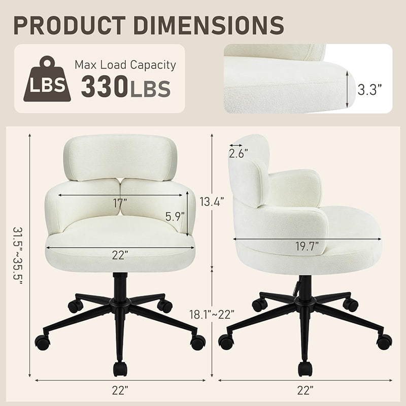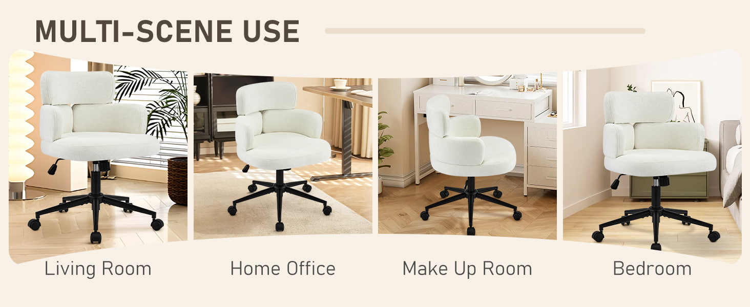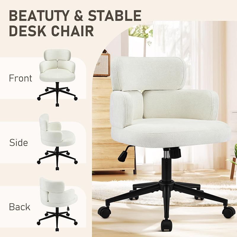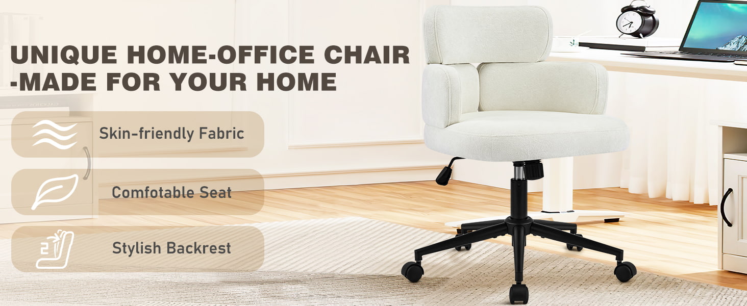 Esta silla de oficina giratoria tapizada está diseñada para oficinas domésticas modernas, espacios de trabajo boutique e interiores centrados en el estilo de vida. Con un distintivo respaldo en forma de trébol con reposabrazos integrado, esta silla combina atractivo visual con ergonomía funcional. El asiento amplio y suavemente acolchado está tapizado con una tela de chenilla que no daña la piel y ofrece una experiencia de asiento lujosa y cómoda para largas horas de trabajo, lectura o relajación. Un mecanismo de altura ajustable, un giro suave de 360 grados y una función de balanceo suave permiten a los usuarios personalizar su posición de asiento con facilidad, mientras que la base de metal resistente y las ruedas giratorias silenciosas garantizan estabilidad, movilidad y protección del piso en diferentes entornos.