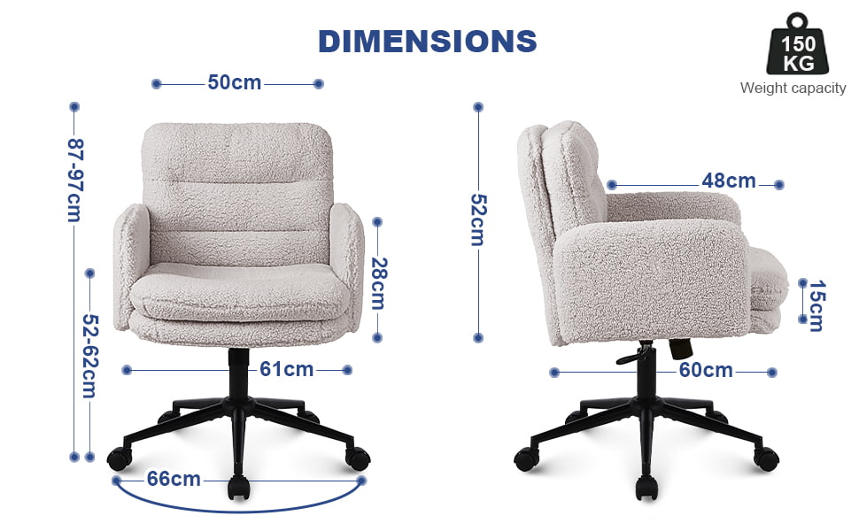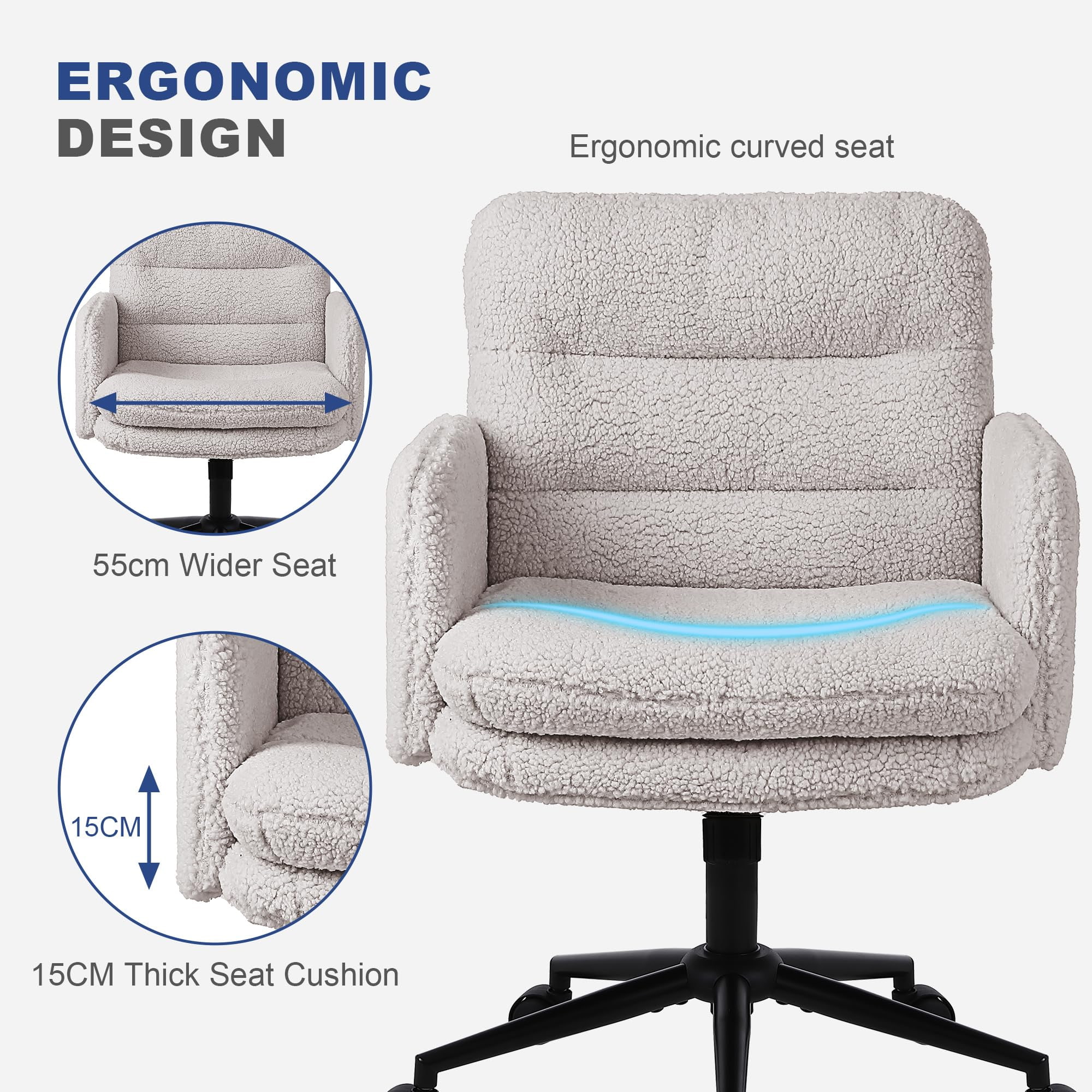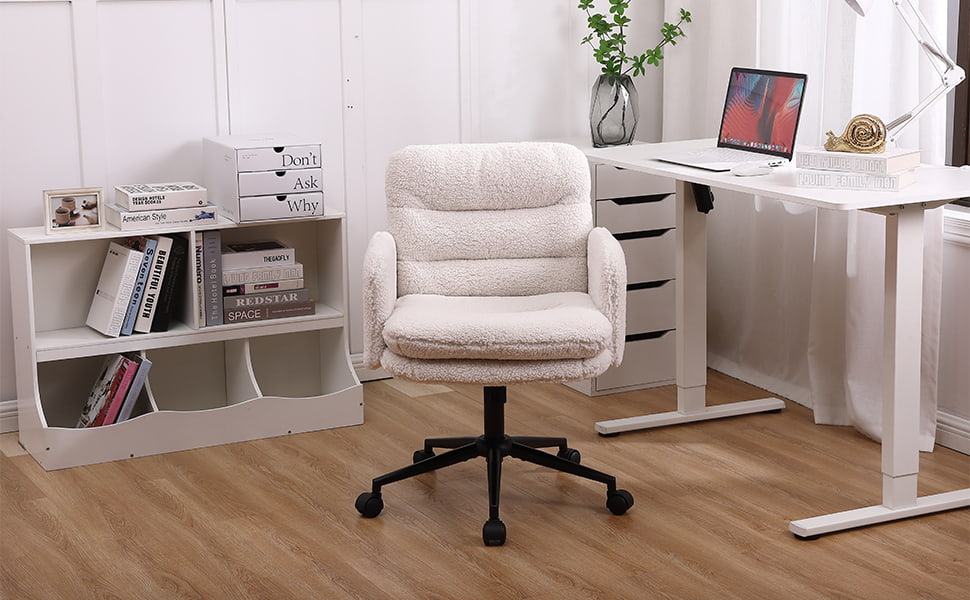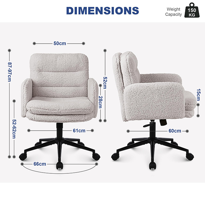 Esta silla de oficina de imitación de cachemira está diseñada para compradores que buscan un equilibrio entre comodidad, estética y calidad de fabricación confiable. Tapizada con una tela de cachemira sintética suave y agradable para la piel, la silla cuenta con un cojín grueso de alta densidad de 15 cm que brinda soporte duradero sin colapsar, lo que la hace ideal para trabajar, estudiar o usar tocador durante períodos prolongados. La estructura ergonómica del asiento, combinada con un suave movimiento giratorio de 360 grados, ajuste de altura y una suave función de balanceo, mejora la comodidad diaria al mismo tiempo que mantiene una apariencia limpia y moderna adecuada para oficinas en el hogar, dormitorios e interiores orientados al estilo de vida.