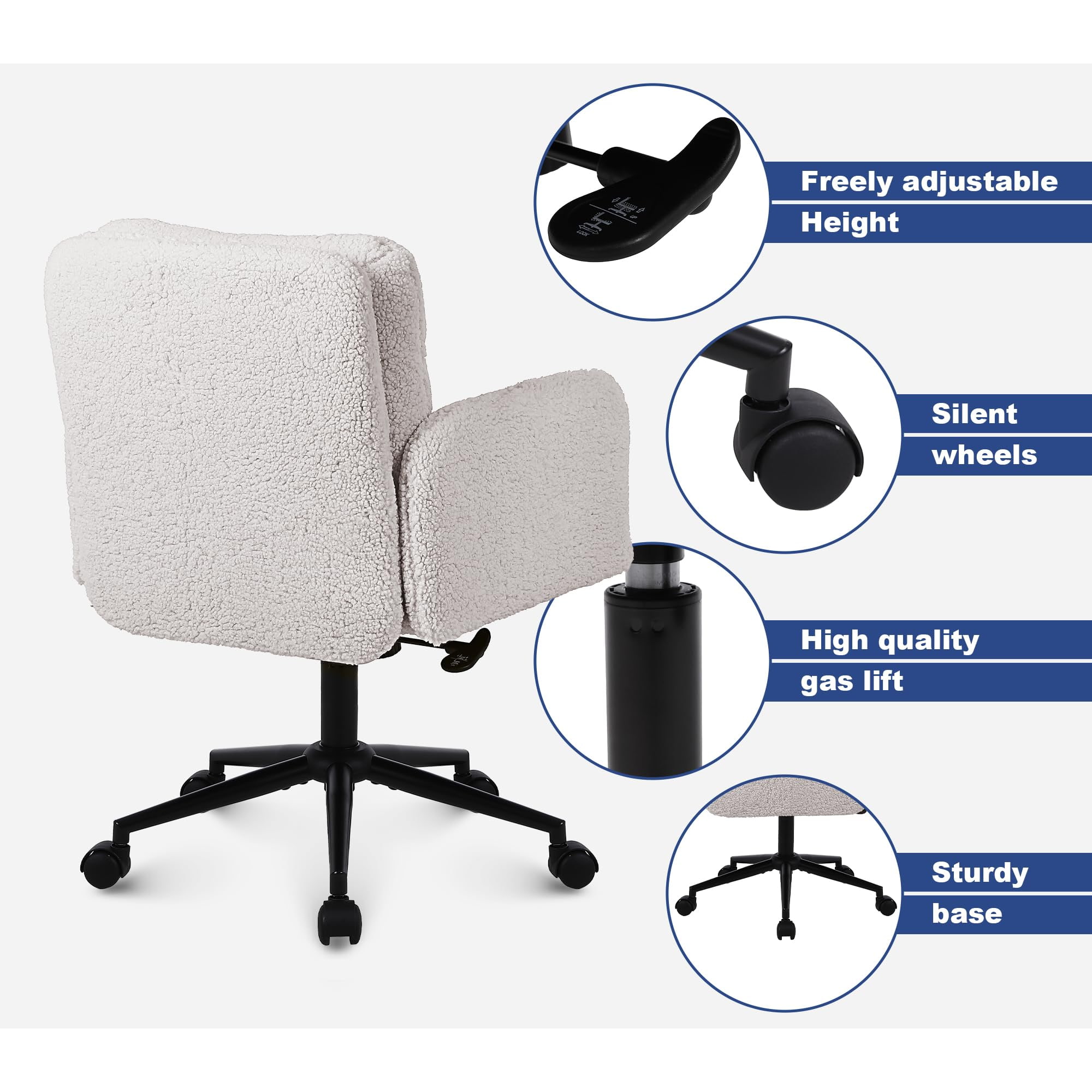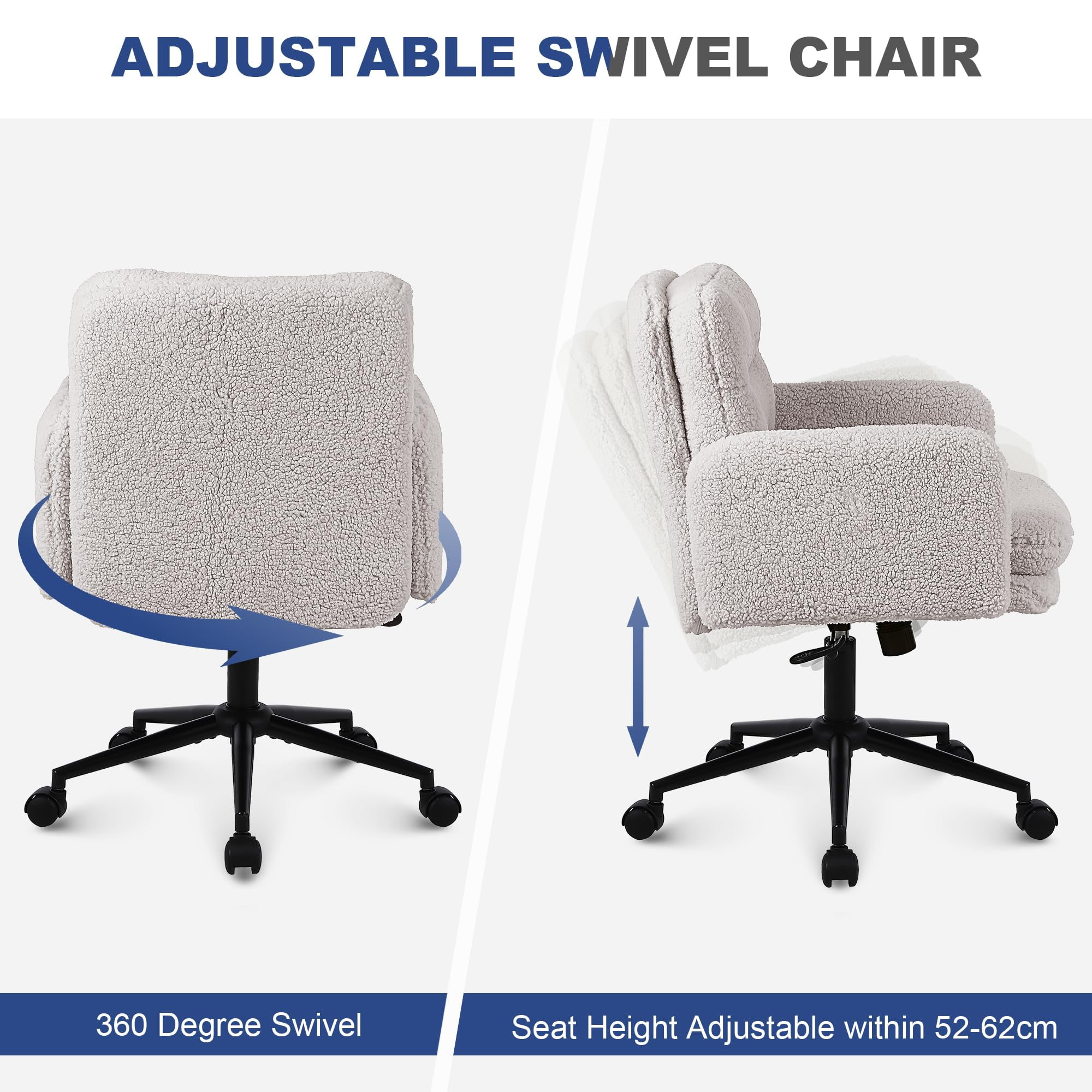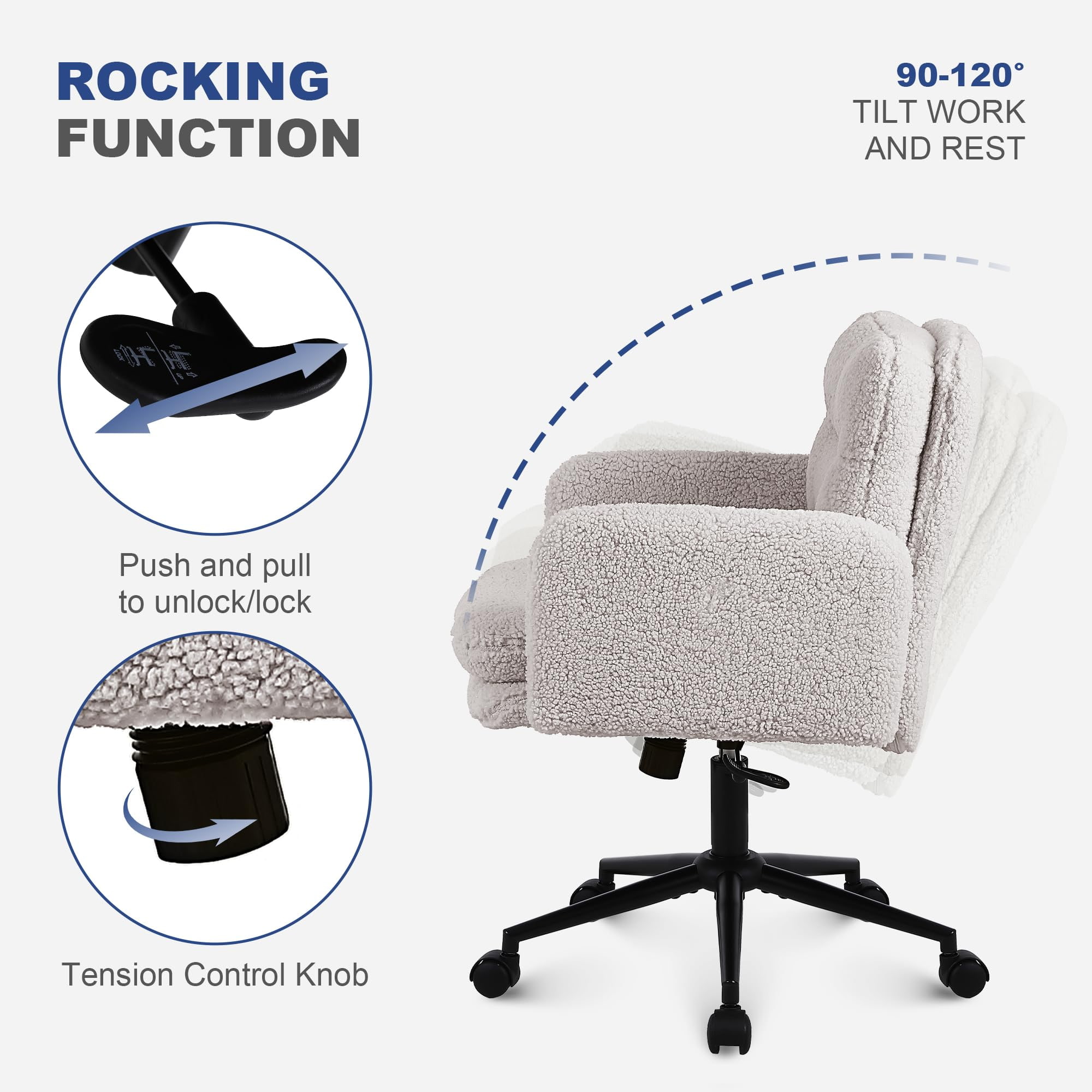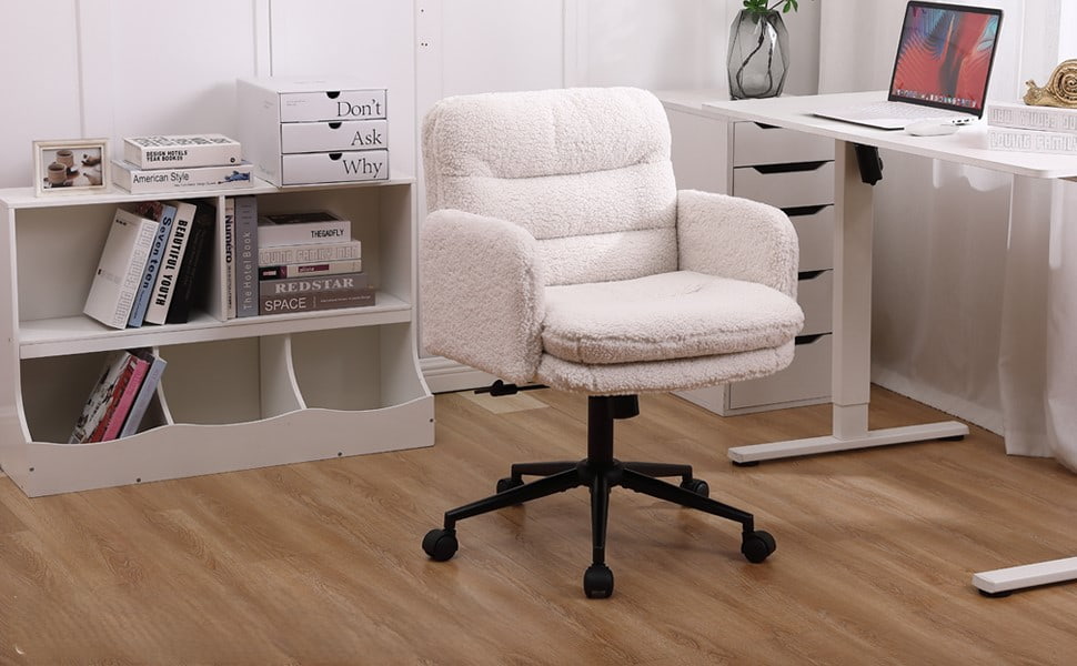 Silla de oficina ajustable de cachemira sintética con función giratoria y mecedora – Silla de escritorio tapizada suave para uso doméstico y de tocador