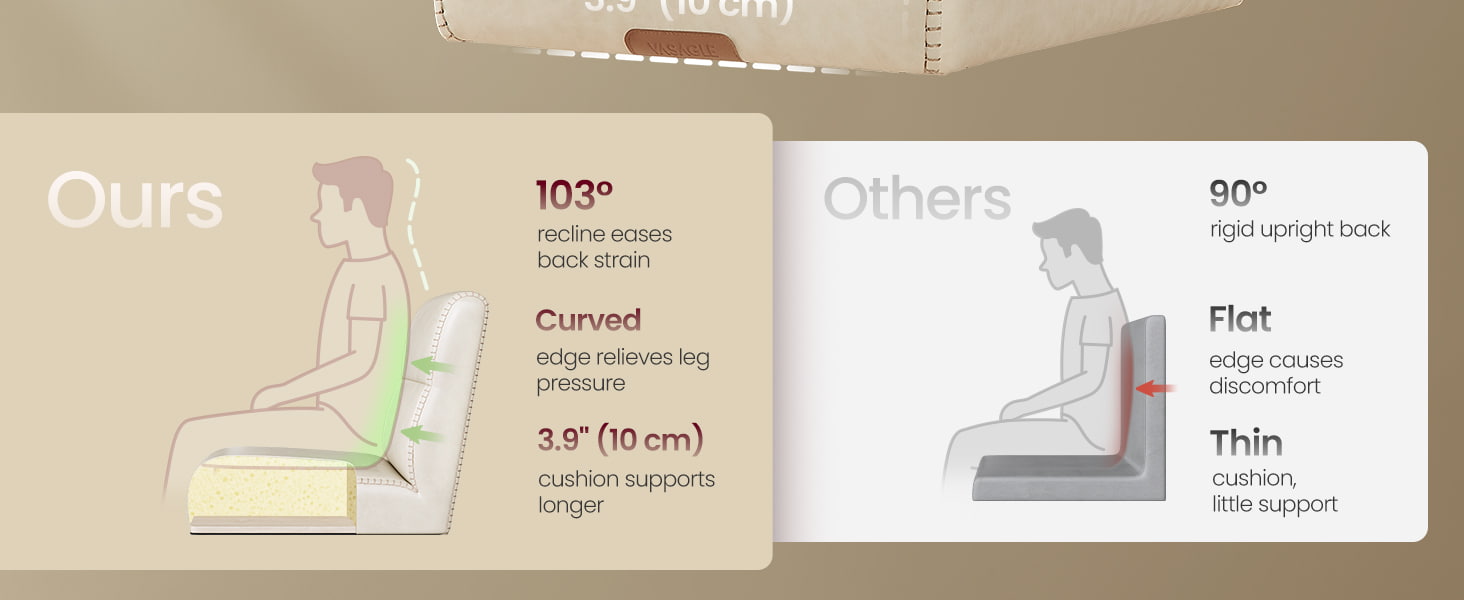 ● Borde del asiento curvado para reducir la presión de las piernas durante una sesión prolongada