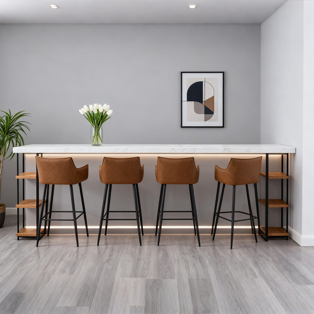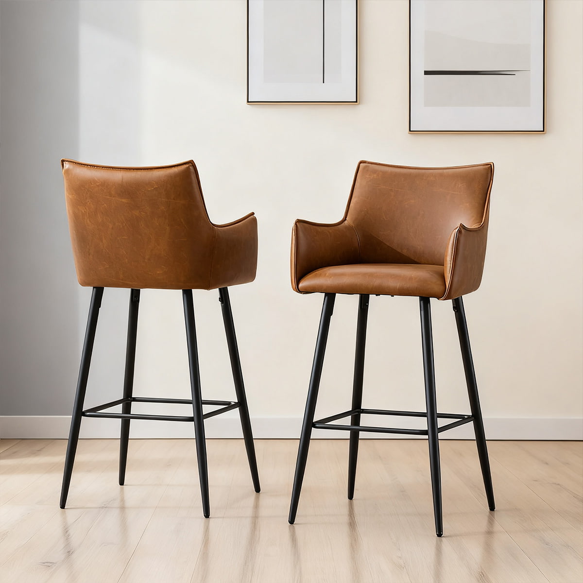 ● Estética moderna: la silueta elegante con cuero sintético marrón cálido y patas en negro mate agrega un encanto industrial refinado.