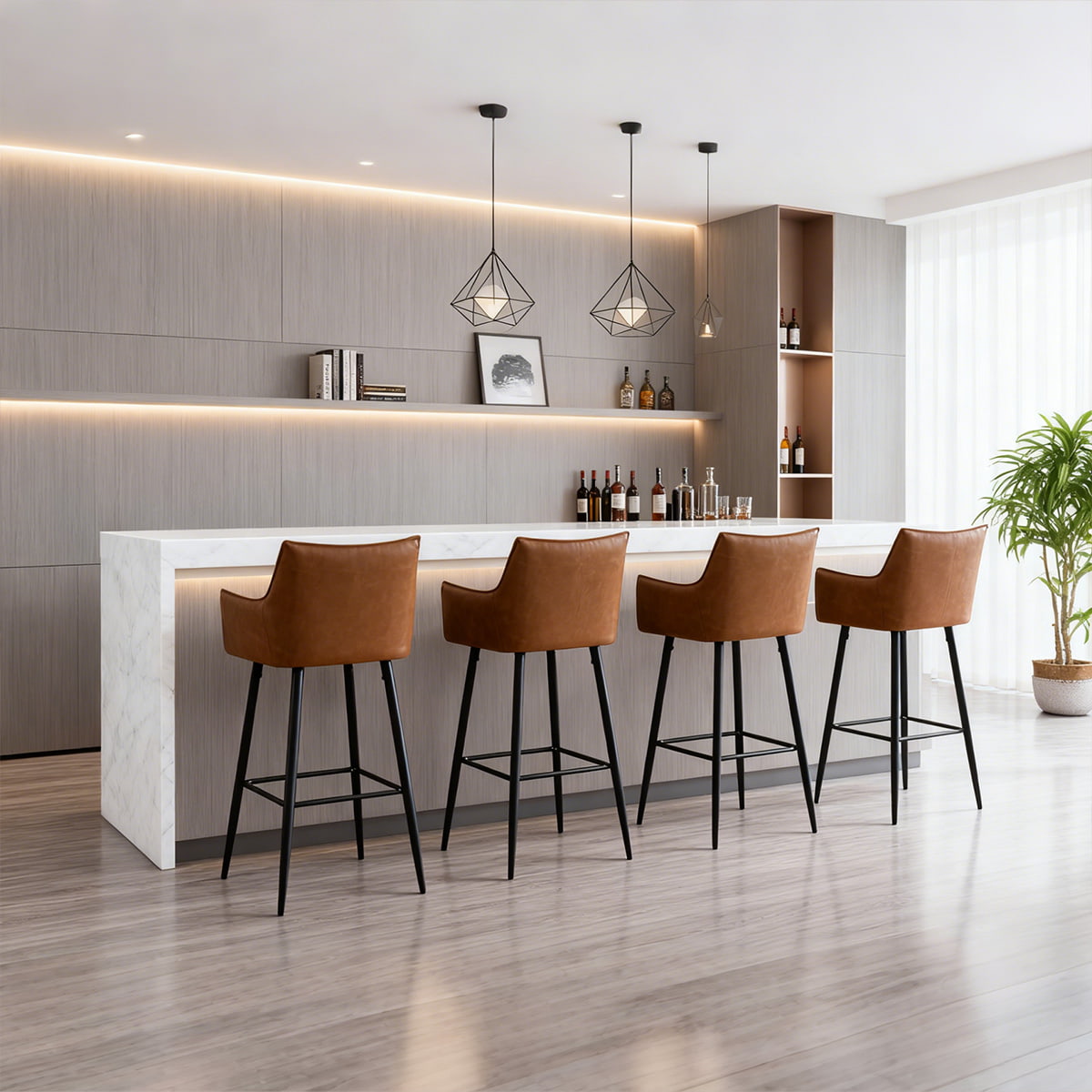 Su silueta minimalista y sus patas en negro mate complementan interiores residenciales y comerciales, desde islas de cocina hasta bares de lujo. Con una base de metal resistente y almohadillas antideslizantes, cada taburete ofrece una experiencia de asiento seguro con una capacidad de peso de 300 libras. Ya sea para hogares modernos, restaurantes boutique o mostradores de bar, este taburete aporta sofisticación atemporal a cada entorno.